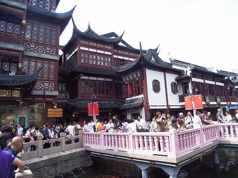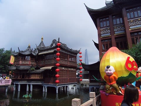 上海の地図を見ると、ほとんどの道路は東西若しくは南北に走っているのが見て取れますが、その中で黄浦江の側に円形になっている道があります。これは、倭寇の襲撃を防ぐために16世紀半ばに作られた城壁だったところなんだそうで...城壁は周囲5キロ弱、高さは8メートルもあったそうです。しかし1912年に取り壊され、現在は人民路と中華路に変わっています。この円形の道の内側は旧上海城とよばれ、租界時代の上海においても中国人だけが住む地域だったそうです。 この地域の中心に豫園があります。 豫園の「豫」は「愉」に通じ、すなわち「楽しい園」という意味なんだそうで。 豫園は外灘と並ぶ上海2大観光スポットのうちの一つであり、上海に来た観光客はほぼ必ず訪れると言っても過言ではない場所。面積は狭いので、急いで回れば30分でも見ることも不可能ではありませんが、狭い空間に芸術品のように細かい工夫が多数なされている庭園は、本来であればじっくりと時間をかけて観光したい場所でしょう...