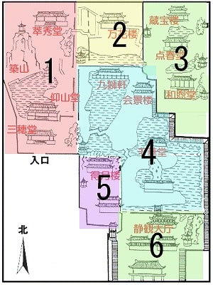 庭園は5つの竜壁によって6区に分けられており、それぞれに特色があるのだそうで。