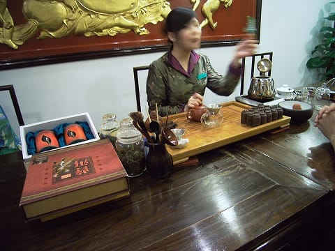 豫園商城の隣に位置している中国百貨店(マクドナルドの向かい側)の建物の地下にありました。いわゆる茶芸館とでも言えば良いんですかね...