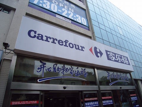 日本にも"カルフール"と言う名前のスーパーマーケット(カルフールでは"ハイパーマーケット"と呼称します)がありますが、実は日本のカルフールは、当初とは異なり本家のカルフールとは単なる提携関係であって、まったくの別会社になってしまっています。 そう、皆様良くご存知のイオングループですね... 対して、中国は本国フランスからの直営店です。 現在、中国国内に139店舗。 上海だけでも19店舗あるそうです...すごっ...(^^;) 全部は解らないのですが、代表的なところで 新里城店(浦東です)、七宝店、武寧店、万里店、曲陽店、南方店、聨洋店、金橋店 などがあるそうで、今回、私たちが訪れた古北店もそのひとつです。