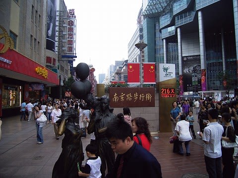 地下鉄の南京東路駅の辺りから、次の人民広場駅までの間の南京路は、歩行者専用道になっています。のんびり散策するには良いですよ。(※人は多いですが...)