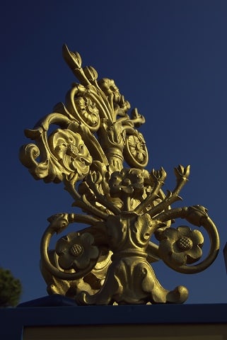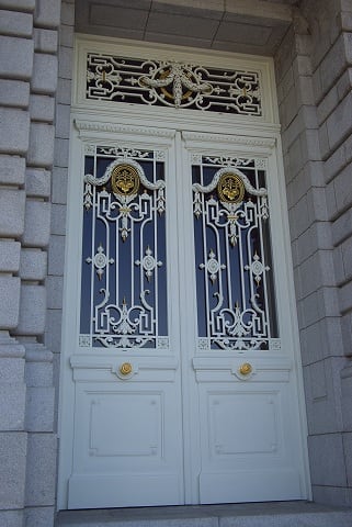門扉の微細な飾り物のアップ。