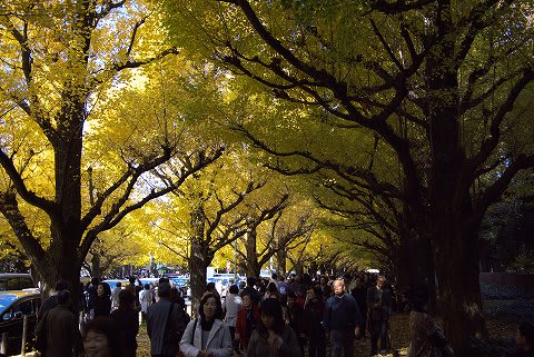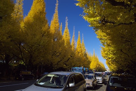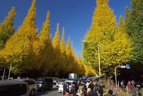 銀杏は青山通り口から外苑中央広場円周道路に至る四並列の街路樹として植栽されています。