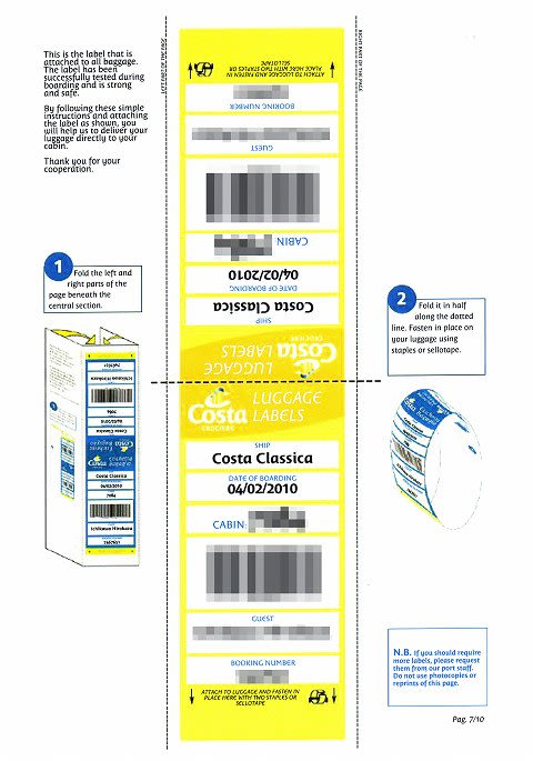そうそう紙のバッゲージタグは他社でも経験しました。 最近ウェブチェックインするとこういうのがほとんどです。 もう驚かなくなりました。 カーニバルとあとはどこだったかしら・・・よく覚えていません。 自分でホッチキスを持って行きますが、係りも持っています。