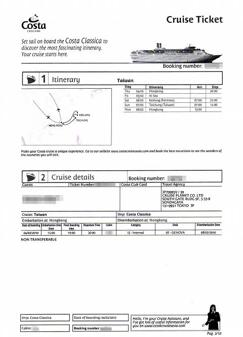 まずは↑の日程表ですね。 そして、"Cruise Ticket"
