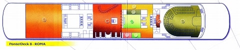 このホールの上部は吹き抜けになっていて、9デッキまで貫通しています。