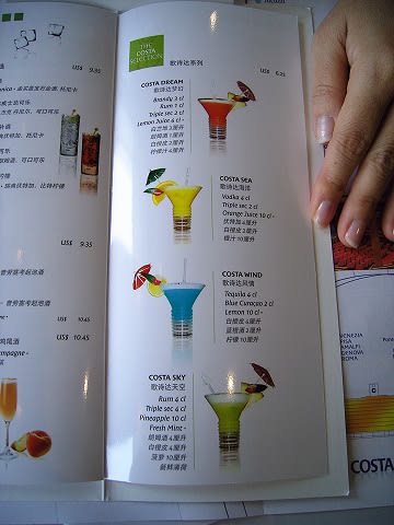 先だってもご紹介しましたが、この日の"今日のカクテル"はピナコラーダだったわけですが、この今日のカクテル以外でも、"コスタスペシャル"なカクテル類もなかなか美味しそうです。