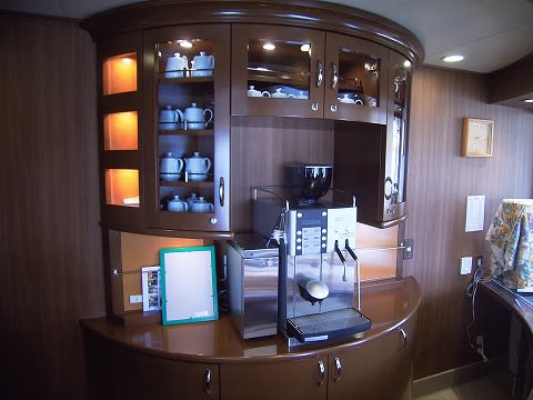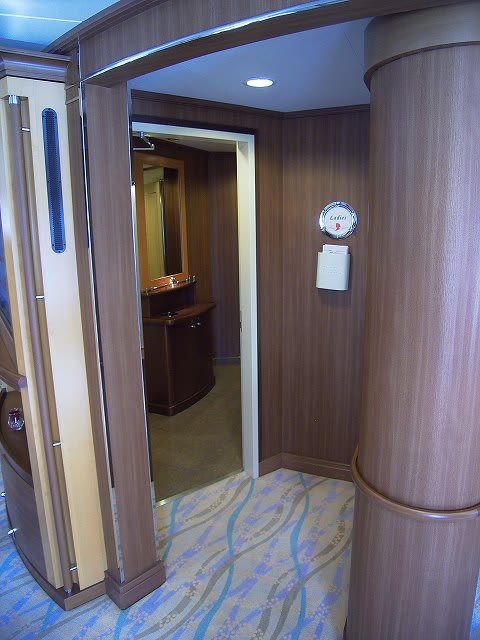 ブリッジは1フロア下の階ですが、実はスイートルームのスペースが宿泊客専用になっていてキーロックされてしまうスペースになった関係で、上からアクセスできるようにしたのではないかと...推測ですけどね...