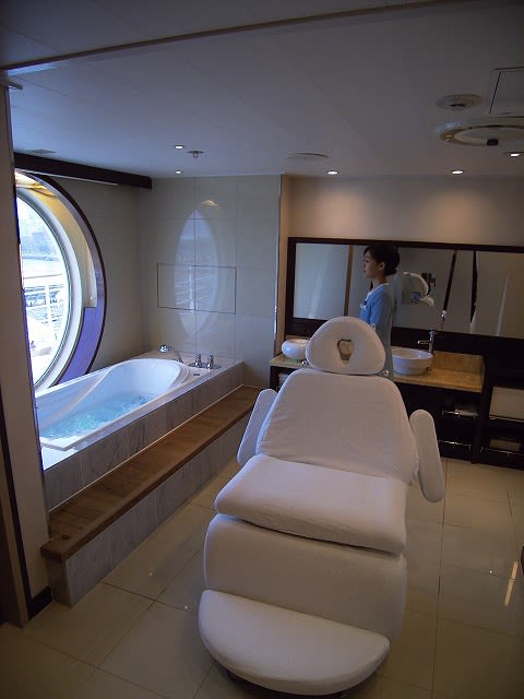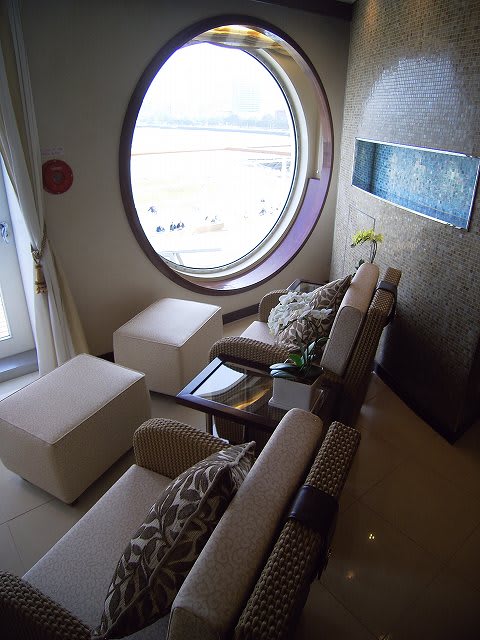 くりぴんさん、こんばんは。 そう空いてもいないですよ。まだこの時間帯は人の流し方がうまく行ってないようで、ときどき空白が出来てました。 スパは左舷着き停泊中は営業しない(出来ない?)んでしょうね...