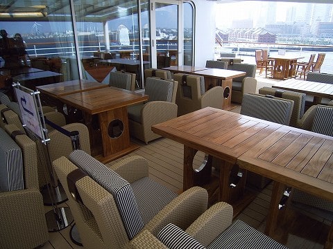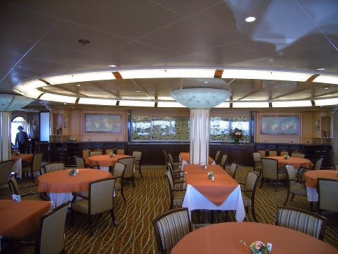 ディナー時はアッパークラス専用ですが、朝昼は空いていれば通常キャビンの乗客も利用可能だそうです...そうなるとなんだか混みそうですよね...