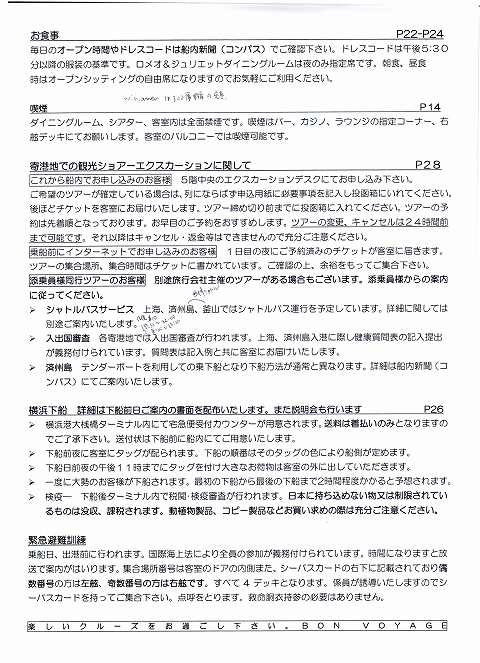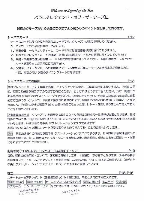 横浜発着Legend Of The Seas乗船記 第一日 その3 船内新聞第一日