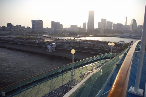 ganchan_siestaさん、こんにちは。 2日発と10日発、横浜に限らず、寄港地の時間も結構違うんですよね。 まぁどちらがいいかは議論があるでしょうけど... 写真的には横浜は夜のほうが絵になりそうな気がします。 この時間帯、船からだとみなとみらい方向は強烈な逆光で... なかなか絵にするのは難しいです... ギリギリさでいうと、乗っていたわけではありませんが、サファイアプリンセスやダイアモンドプリンセスがベイブリッジを通った時はホントにギリギリでしたね。 アンテナ倒したんじゃないかって、このブログでも議論になりました...(^^;) あとP&OのAuroraが結構ギリギリらしいんですよね。 引き潮を待って入出港したりしてましたから。