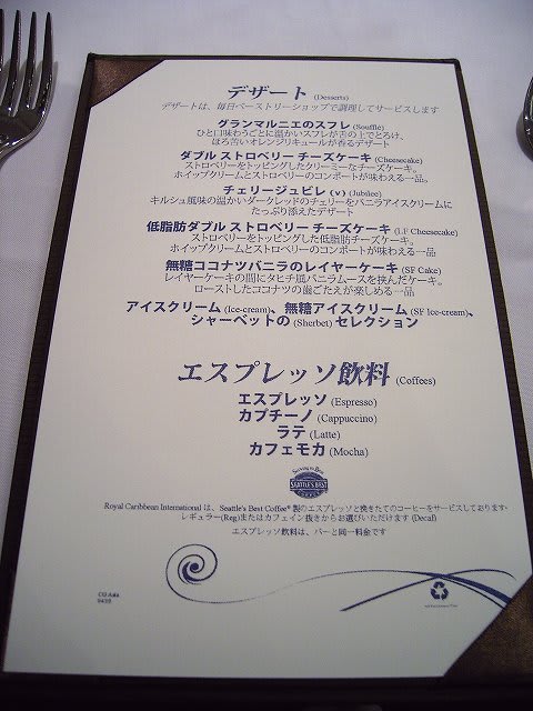 まりさん、おはようございます。 スフレ、ある意味凄いデザートでしたよね...(^^;) RCIのパスタは端から期待していないので、最初からガン無視でしたけど、怖いもの見たさで昼に一度食べたかな...ある意味、期待通りでしたけど... ちなみに日本スペシャルじゃないと思います...