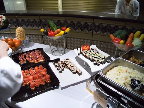 これはコスタには遠く及ばないアメリカンなピザでした... ソラリウムのビュッフェには巻き寿司も用意されてましたよ。