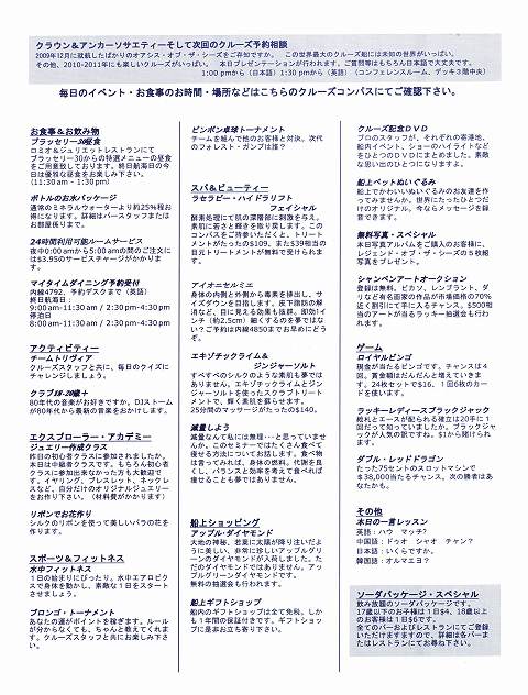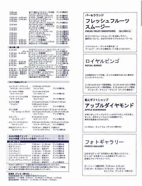 横浜発着Legend Of The Seas乗船記 第一日 その3 船内新聞第一日