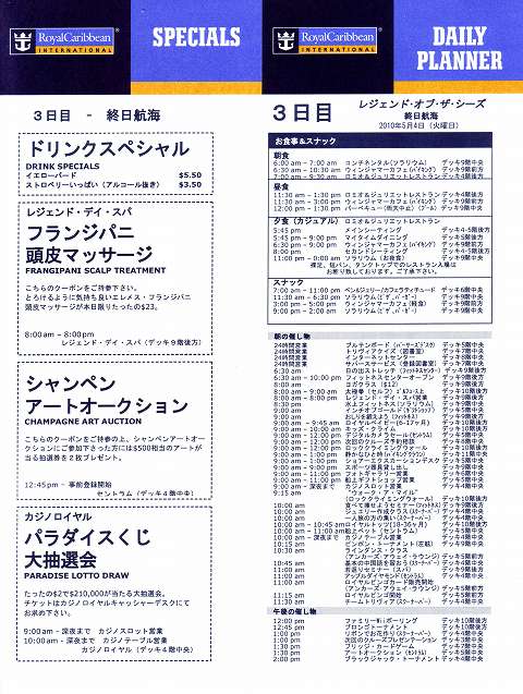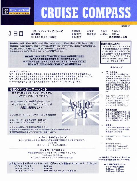 横浜発着Legend Of The Seas乗船記 第三日 その1 船内新聞第三日