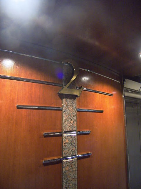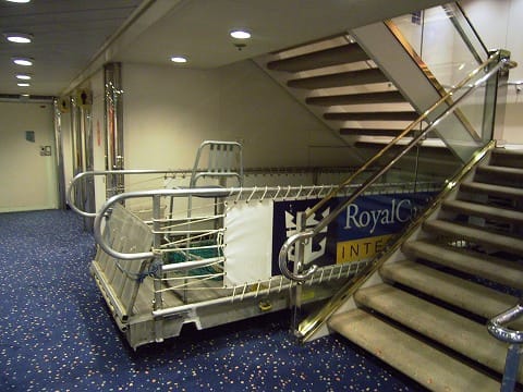 ここにはRCI名物のエレベーター呼び出しボタンを備えたデッキレイアウトの掲示版はありません。 階段脇にはボーディングブリッジが...