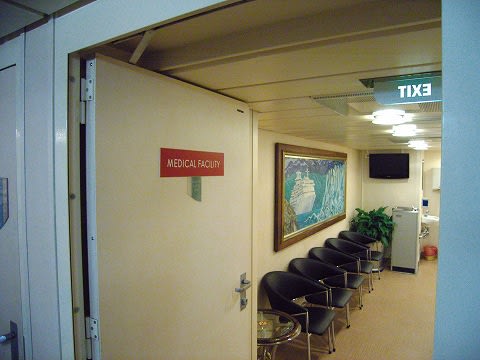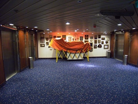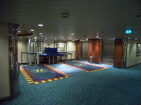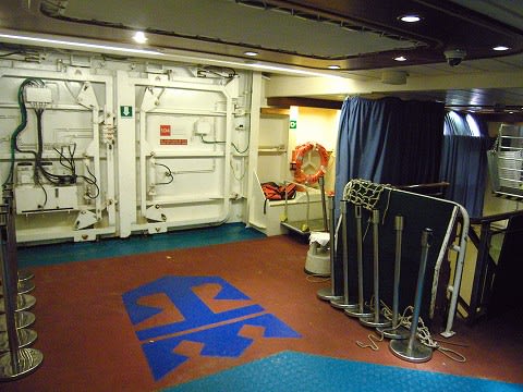 右手に階段が見えますが、コレを降りていくとボートステーションに出ます。 テンダーなどに乗り込む時のステーションです。 1デッキのエレベーターホール