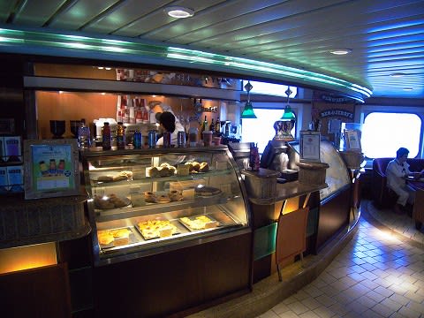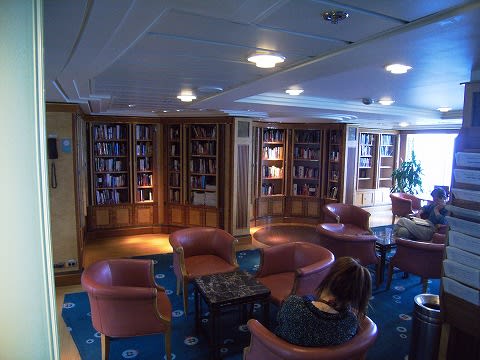 cruise_qm2さん、おはようございます。 この船、何処に行っても賑やかで、静かな空間ってなかなか無かったんですが、この、6,7デッキは比較的静かで好きでした。 とくにライブラリは結構入り浸ってましたね。 小学館のコーナーがあって、そこに\16,800-の世界地図帳が置いてあったんですが、これがなかなか面白くて。 この小学館コーナー、5/2に横浜で設置したらしいです。