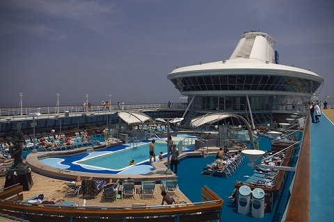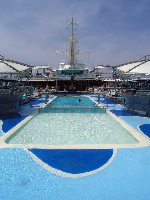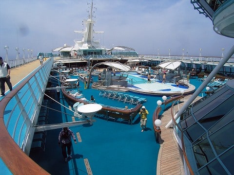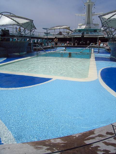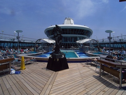 バイキング・クラウン・ラウンジの横から9デッキのプールを俯瞰します。