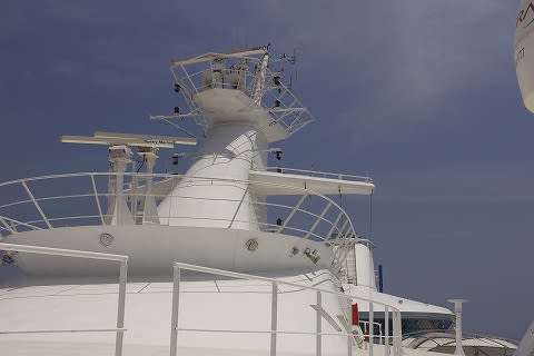 飾りじゃなくてちゃんと動いてました。 その場所からレーダーマストを見上げるとこんな感じ。