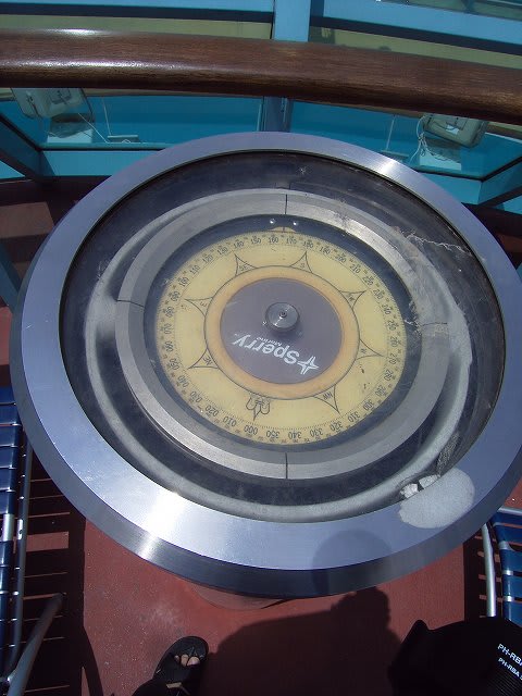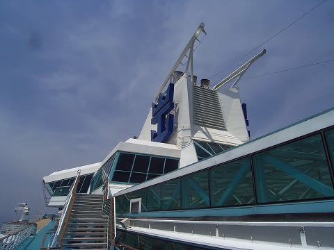 ちょうどウィンジャマーの真上ですね。 で、さらにちょっと上に上がることが出来て、そこはデッキチェアが置かれたスペースなんですが、なぜかこんなものが設置されてるんです。