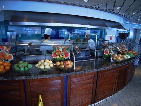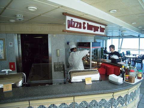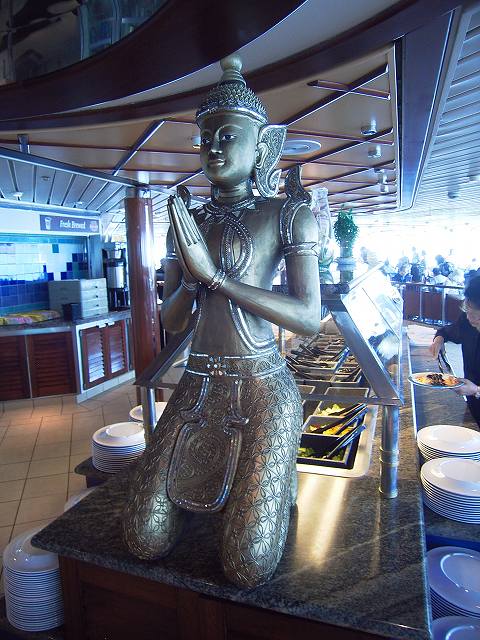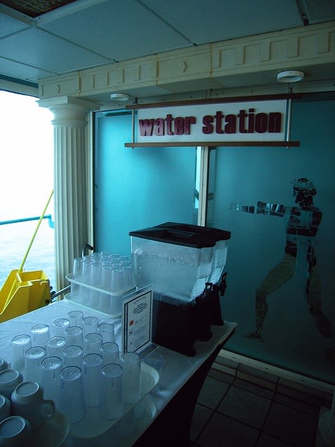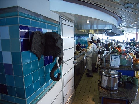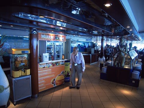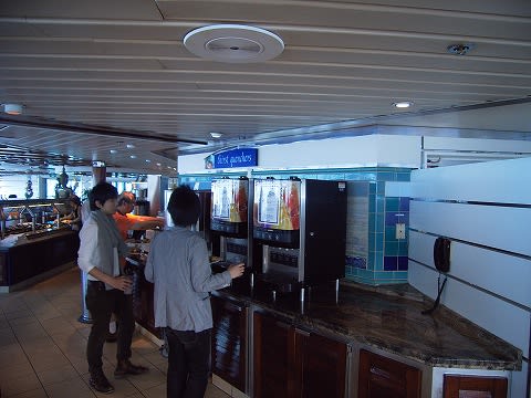 ここはクルーズを通じてもっとも滞在時間が長かった場所ですね。 静かだし、あったかいし...いつでもドリンクあるし、軽食もある。 天国です...(^^;) その軽食コーナー