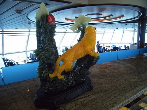 あんまり広くないです。モナークは2層構造だったし、ラプソディはもうちょっと客席側が広かったですね。 こういう置物が所々に置かれてます。