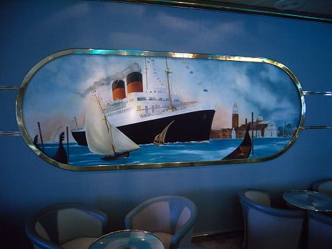 4件ステージ横の船はどう見てもキュナードのイメージですよね。