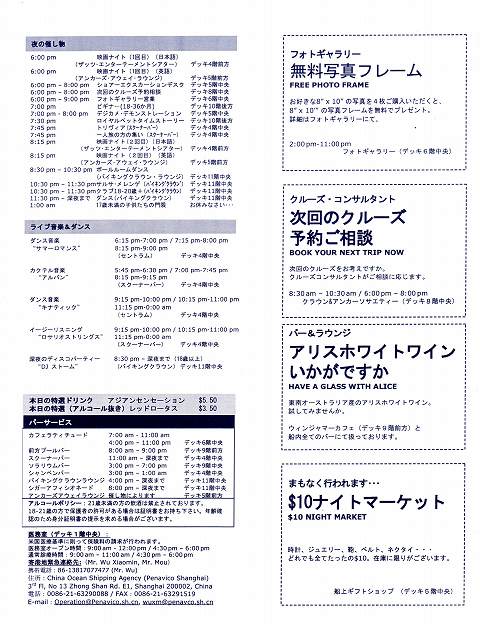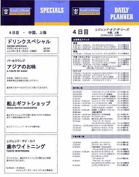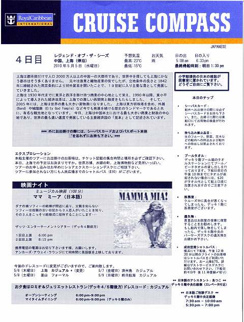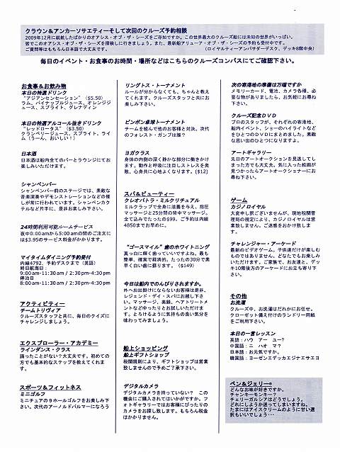 横浜発着Legend Of The Seas乗船記 第四日 その1 船内新聞第四日