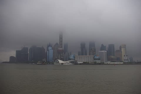 有名な浦東の景色も雨で煙っています...