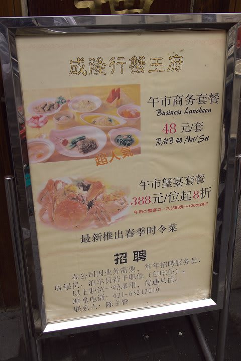 2時間近く歩きまわりましたかね... ちょっと早めのお昼はお馴染みの"成隆行蟹王府"へ。 ※お店についての詳しい情報は後述のリンクをご参照ください。 場所は九江路になります。 お店に着いてみると、なんとジモピー向けのランチメニューがあるじゃないですか!!
