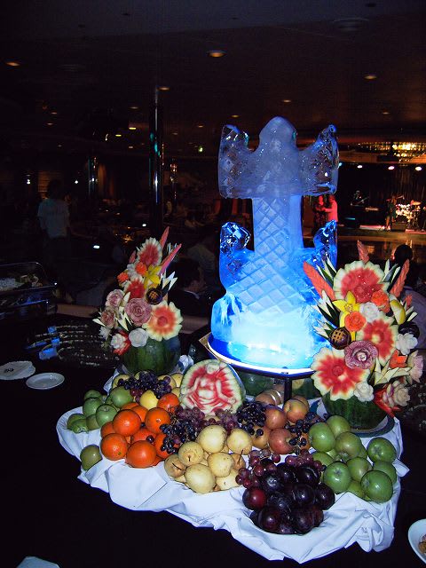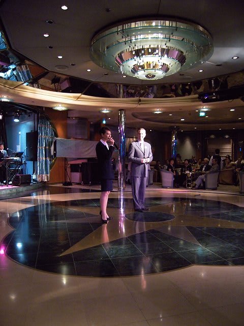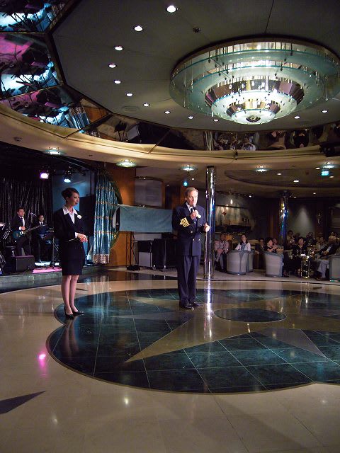 このパーティ、なんと日本人のリピータだけで300人を超えていたとか... RCIもびっくりしたでしょうね... 少しは認識を改めてもらえたでしょうか... 今回のリピータ最多乗船は31回のアメリカ人夫婦でした。 キャプテンのご挨拶。