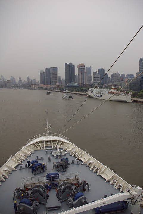 なんだか落ち着きません。 まさかこのまま黄浦江抜けるまで後進なんてことはないよなぁ... こんな船を横目に見ながら...