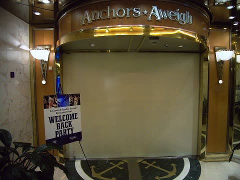 ロイヤルカリビアンのリピーターズパーティです。 会場はアンカーズアウェイ。 看板です。