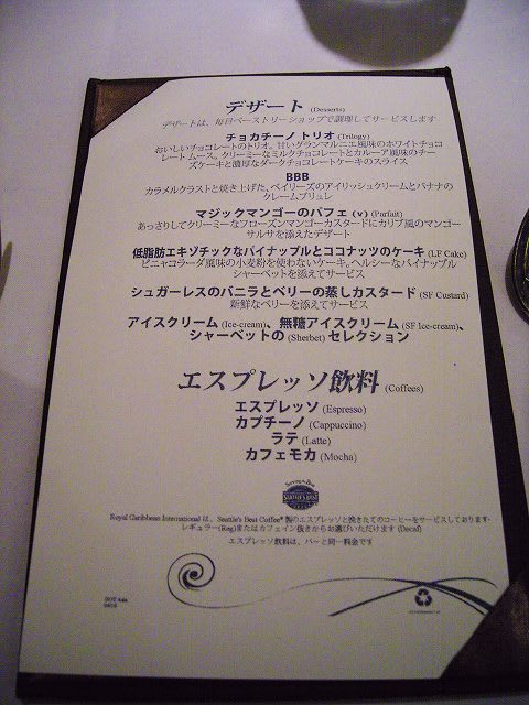 横浜発着Legend Of The Seas乗船記 第五日 その6 夕食