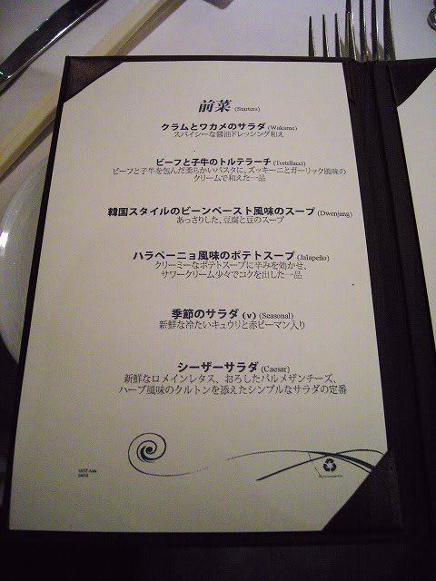 残念・・・前菜の"韓国味噌汁"、主菜2品とも同じものでした。違いは、前菜のワカメ&クラムぐらいですね。(これもイマイチ) お隣さんが頼んでいたパスタの方がまともだったかもしれません。