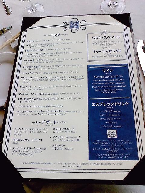 朝ごはんはウィンジャマーで済ませてしまったので写真がありません。ご容赦... お昼はダイニングへ。 メニューです。