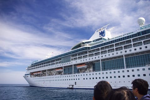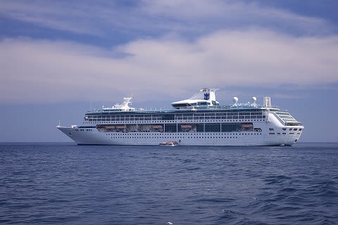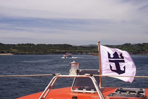 コレだけ天気がいいので、エクスカーションとして、このテンダーを使った "ボートからのLegend Of The Seas撮影会" なんていうエクスカーションもやれば良いのにって思いましたね。 ボートに乗って、船の周りを一周するだけですけど。 絶対、需要があったと思うな。 RCIさん、是非、次回はご検討ください。 ま、与太話はさておき... 僚船と行きかいます。