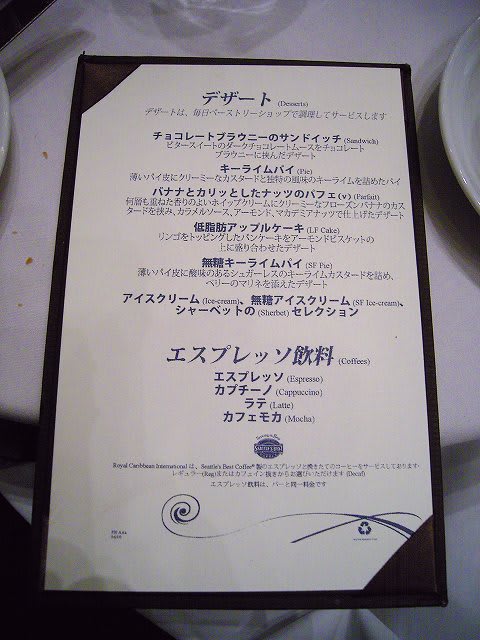 横浜発着Legend Of The Seas乗船記 第六日 その6 夕食