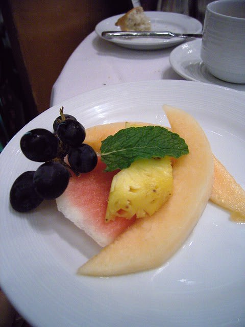 デザートを頼まない連れ合いさんを心配して、ウェイター氏がスペシャリテを用意してくれました。 "フルーツの盛り合わせ"