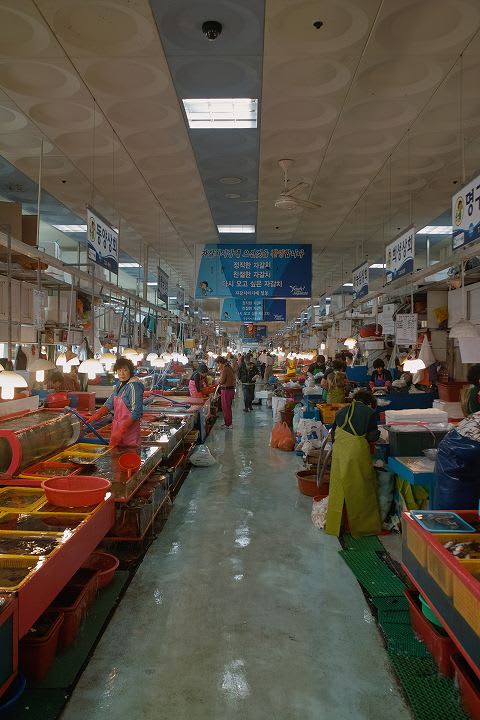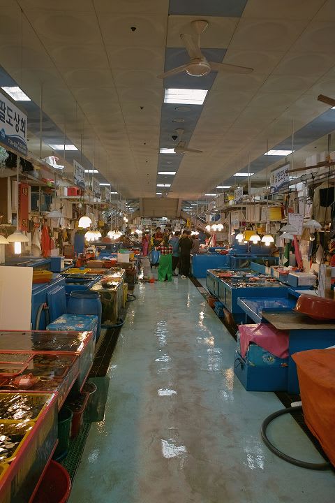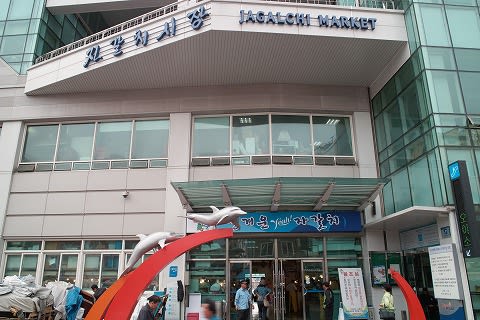 先ほど書いた新しい高層建築が記されてますね。 これ、新しい釜山ロッテタウンのタワーホテルだそうで。 高さ510mにもなるそうです。2014年完成予定。 しかしいくら大陸とはいえ、こんなに日本に近いところで地震とか大丈夫なんでしょうか??? ま、そうは言っても、日本でもスカイツリーとか作ってますしね。 あまりいい話を聞かない韓国のゼネコンさん、大丈夫かな... チャガルチとは... 「チャガルチ市場は、大韓民国釜山広域市南部、中区南浦洞から西区忠武洞にかけての海岸部にある韓国最大級の海産市場。"チャガルチ"は砂利・小石の意。チャガルチ市場ビル周辺部にも露店街が発達しており、観光地となっている。」 (出典:wikipedia) チャガルチの入り口です。