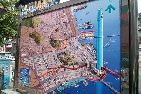 シャトルバスの次の停車場フェニックスホテルは、チャガルチ市場の入り口付近にあります。そのそばにあった、釜山の観光地図。