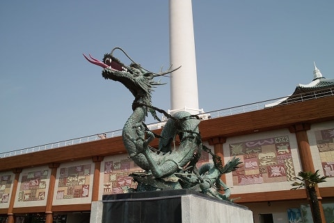 文禄・慶長の役時の朝鮮の将軍。 朝鮮水軍を率いて日本軍との戦いに活躍した韓国の国民的英雄。 龍頭山の名前の由来にそって作られたんでしょうか... 龍の像