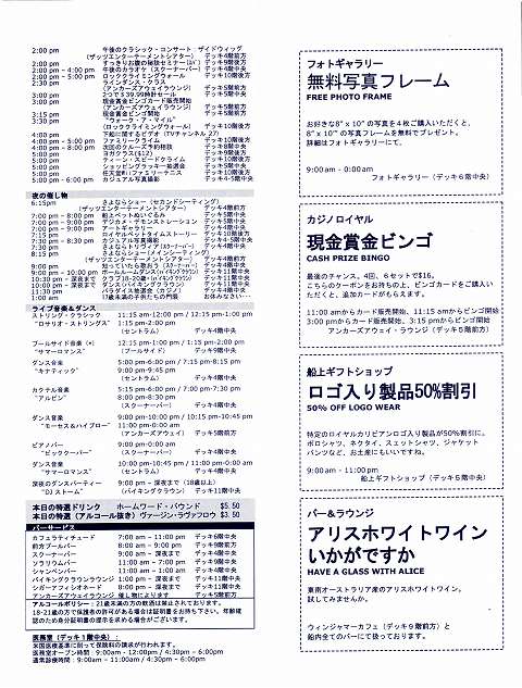 横浜発着Legend Of The Seas乗船記 第一日 その3 船内新聞第一日