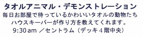 シリーズページを見る横浜発着Legend Of The Seas乗船記 第八日 その2 下船説明会とタオルアニマルデモ