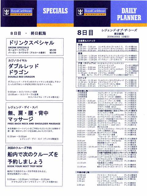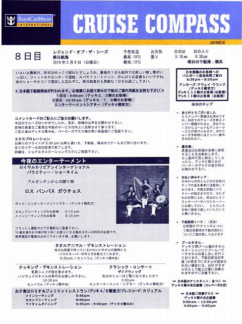 横浜発着Legend Of The Seas乗船記 第八日 その1 船内新聞第八日