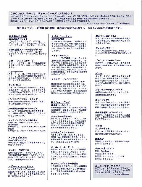 横浜発着Legend Of The Seas乗船記 第五日 その1 船内新聞第五日