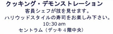 待ってました!! なイベントなんですが... 寿司のデモか... 日本人乗客相手にしなくてもねぇ...