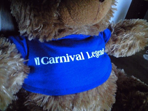 ところがこの子は、よりにもよって、ロイヤルカリビアンの最大の商売敵であるカーニバル社の"Carnival Legend"号のロゴを纏っていたのです...(^^;)